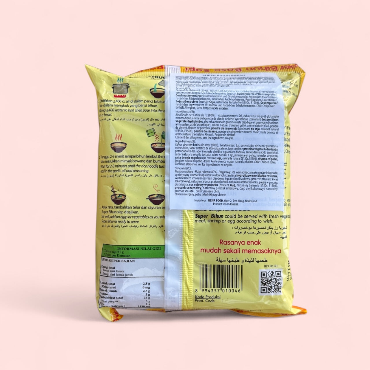 Weil die feinen Reisnudeln aus echtem Reismehl nicht nur leicht und gut bekömmlich sind, sondern auch durch ihren kräftigen, herzhaften Geschmack überzeugen – fast wie eine echte indonesische Bakso-Suppe! Die Zubereitung geht super schnell: einfach mit heißem Wasser übergießen, kurz warten und schon hast du eine leckere, wärmende Mahlzeit.
